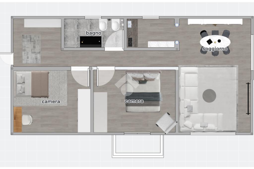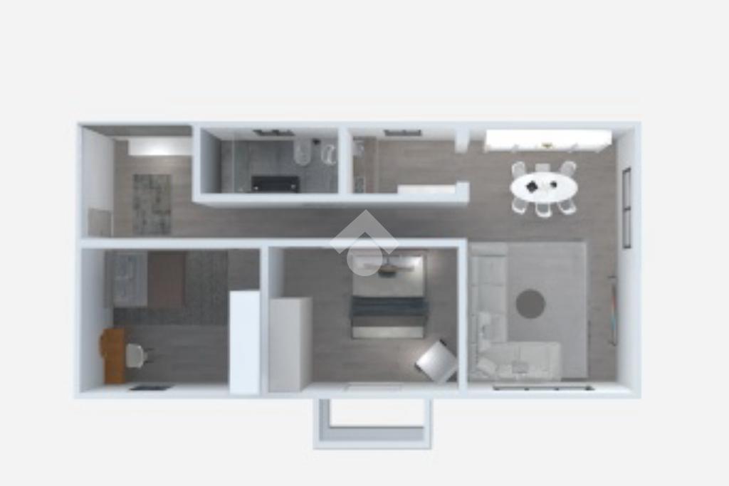 La zona giorno si sviluppa con un soggiorno luminoso e accogliente, arricchito da doppia esposizione con vista sulle colline circostanti, e un pratico cucinotto.