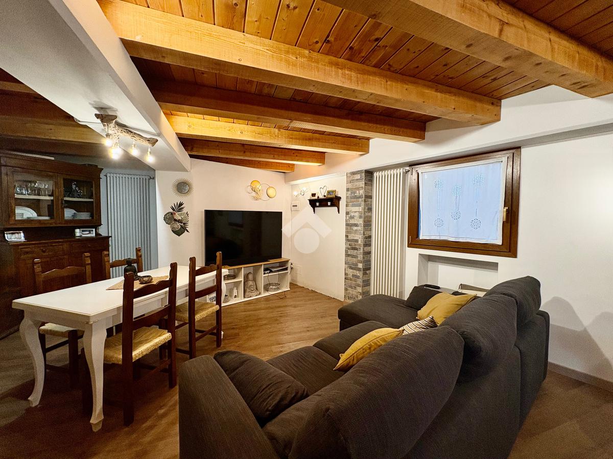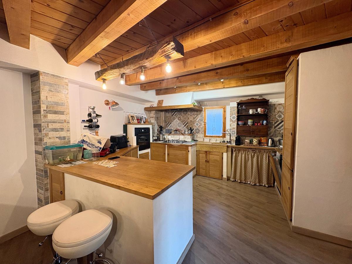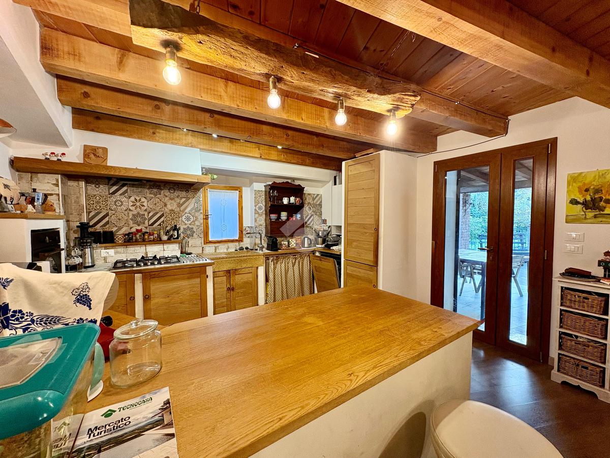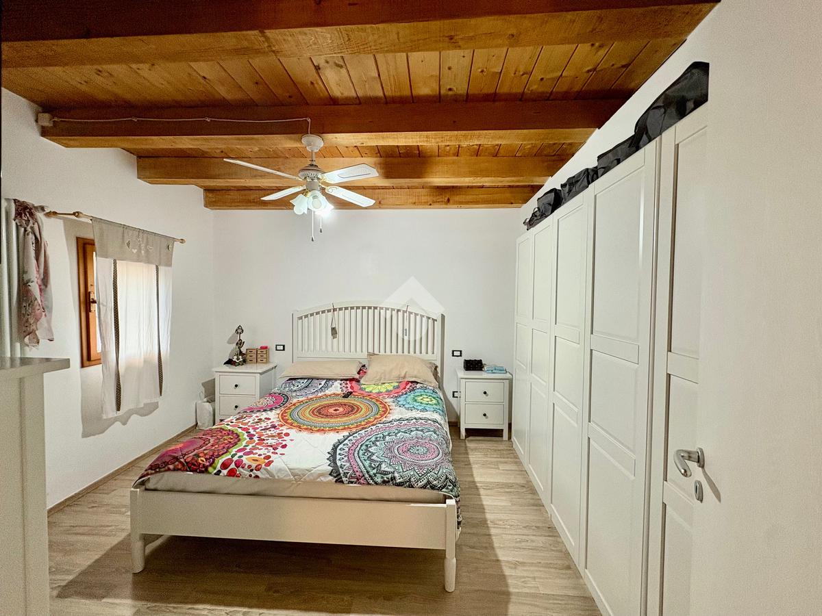 Dal portico d'ingresso si accede all'abitazione, dove si apre un'ampia zona giorno , composta da un accogliente soggiorno con spazioso angolo cottura, caratterizzato da soffitto con travi a vista che dona autenticità all'ambiente. Un bagno di servizio e un ripostiglio da adibire a lavanderia completano il piano terra.