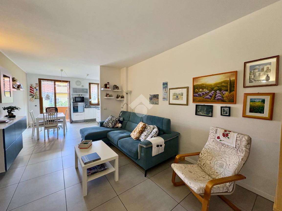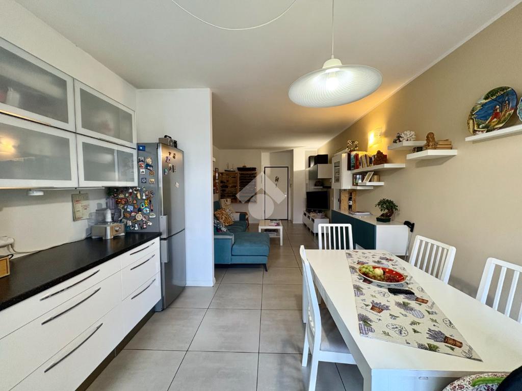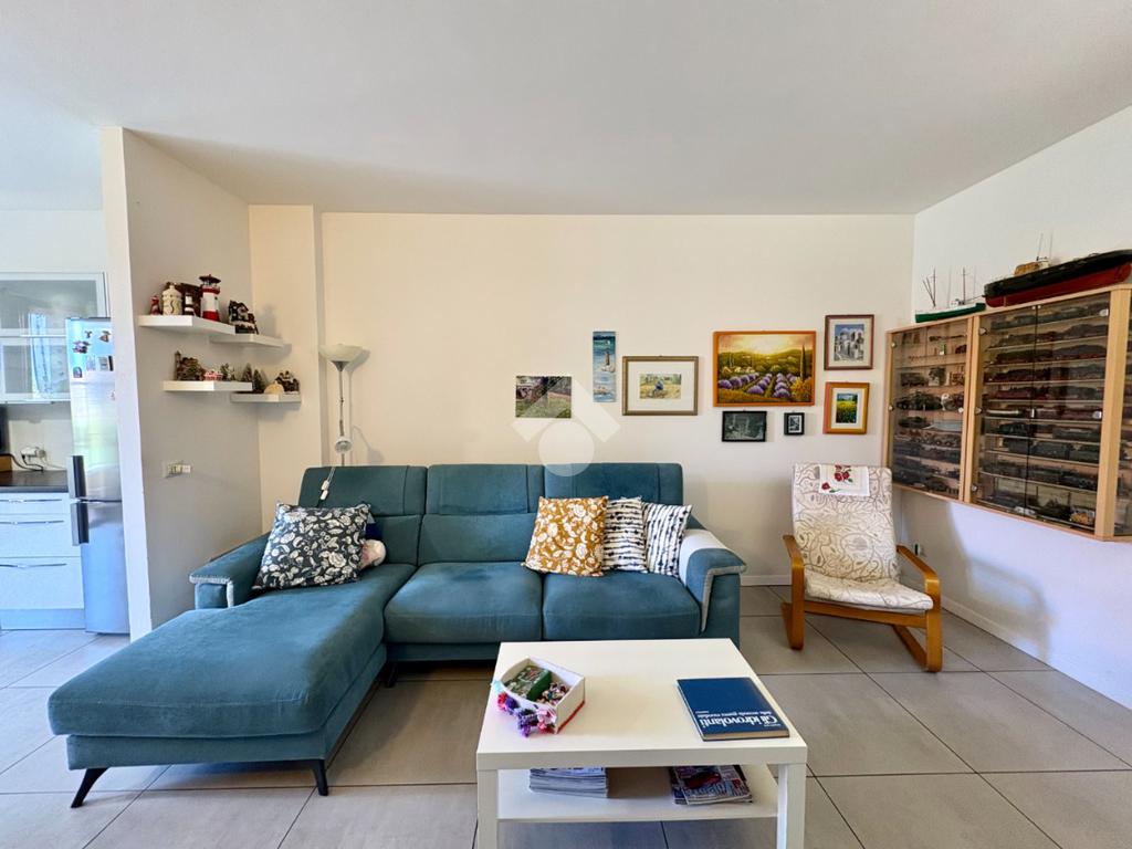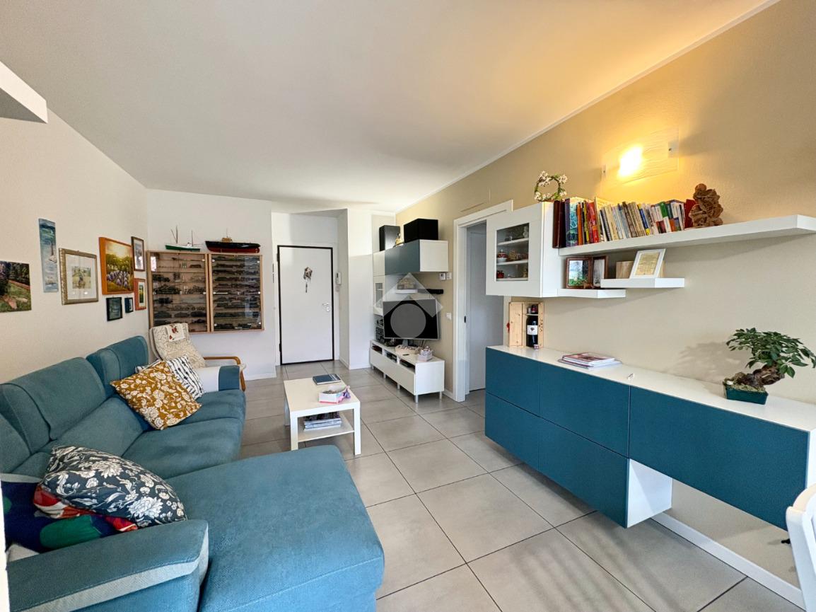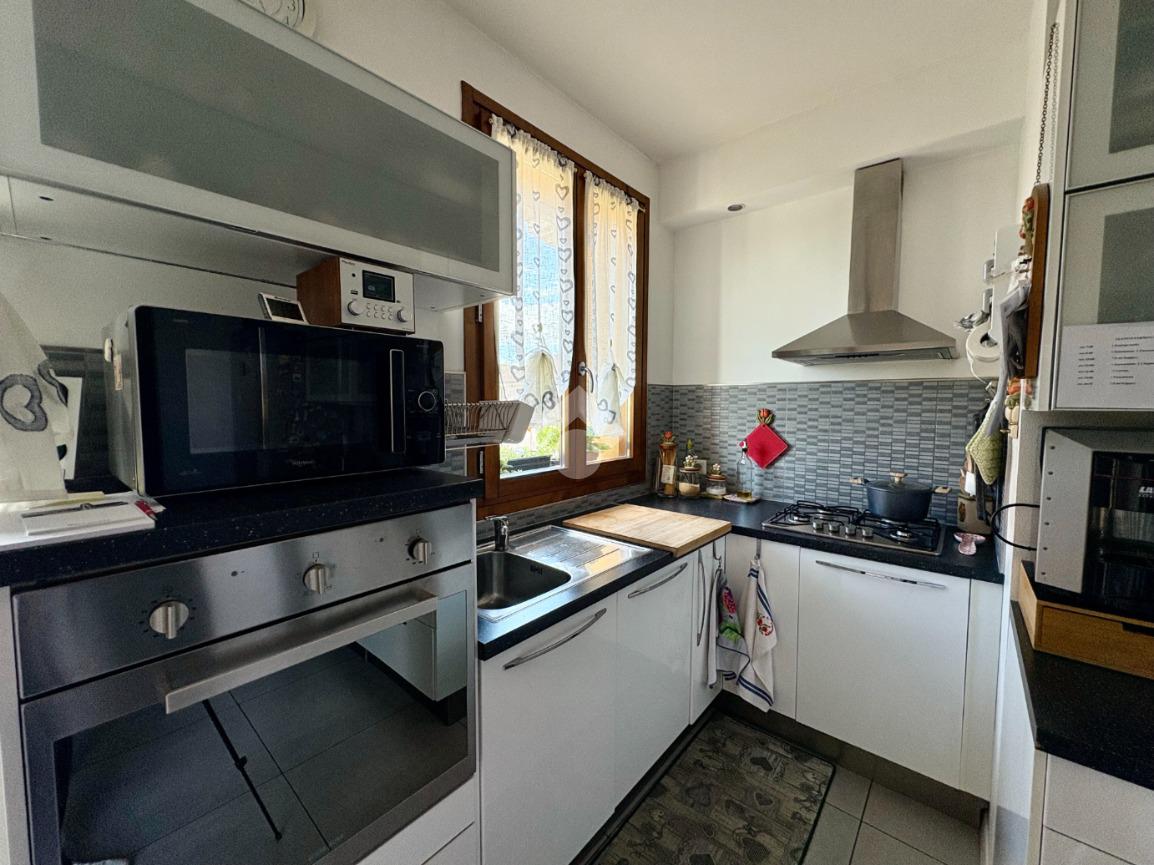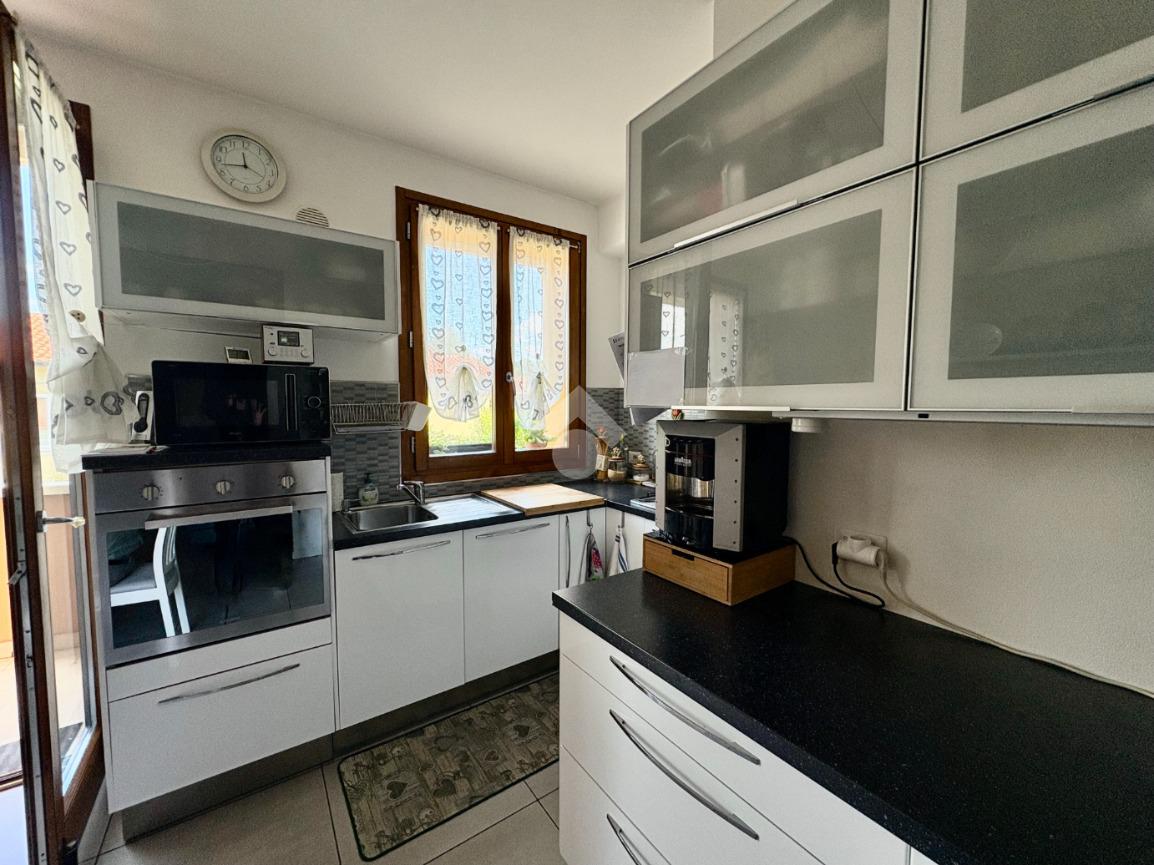L'ingresso si apre su una luminosa e ampia zona giorno composta da soggiorno con angolo cottura e il balcone comunicante con la camera da letto.