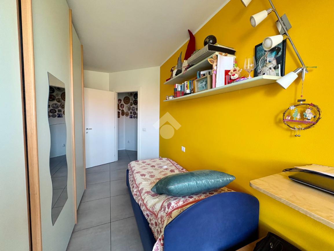 Un comodo disimpegno ci accompagna alla zona notte, dove troviamo una camera da letto matrimoniale accogliente e dotata da balcone privato, perfetto per momenti di relax all’aperto, una seconda camera da letto e un ampio bagno finestrato con box doccia.