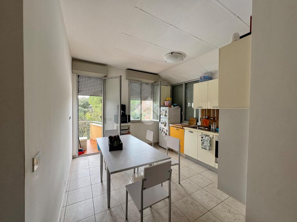 Dal vano scala comune si accede direttamente all’ampio e luminoso soggiorno di circa 25 mq, con accesso al balcone comunicante con la cucina abitabile.