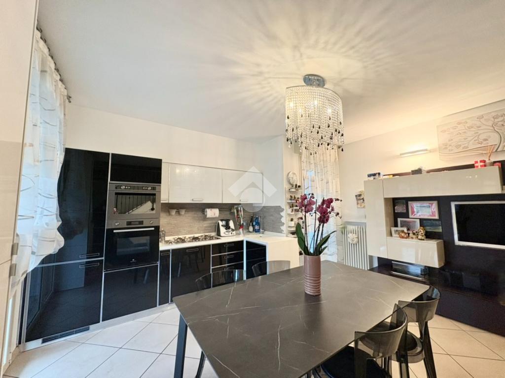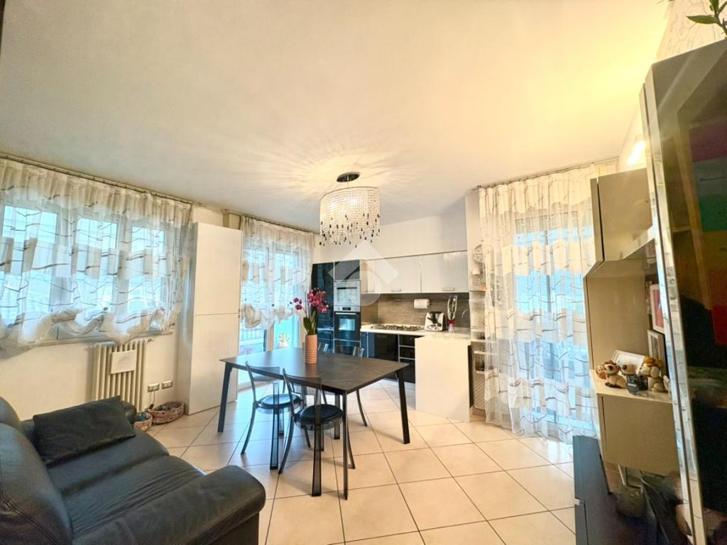 Accedendo al primo piano dal vano scala comune, l’abitazione si apre su un accogliente e luminoso soggiorno con angolo cottura, ambiente arricchito da due balconi che garantiscono grande luminosità e piacevoli affacci esterni.